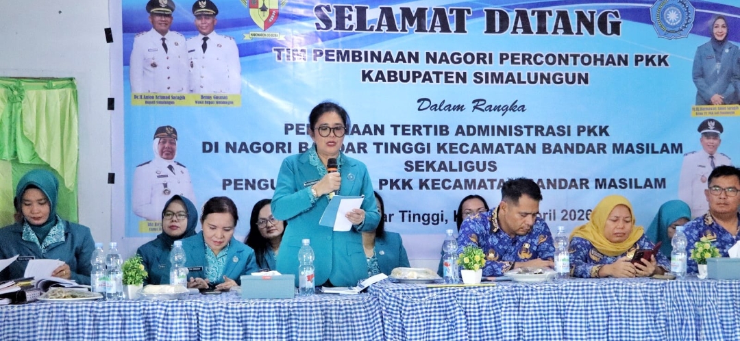 Topmetro24news.com l Simalungun, Pemerintah Kabupaten Simalungun melalui Tim Penggerak PKK hadir langsung untuk melaksanakan kegiatan Pembinaan Nagori Percontohan Tertib Administrasi, di Nagori Bandar Tinggi Kecamatan Bandar Masilam, Sumatera Utara, Kamis (2/4/2026)